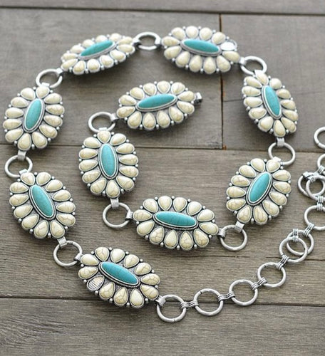 WHITE/TURQUOISE SQUASH BLOSSOM BELT(S/M)